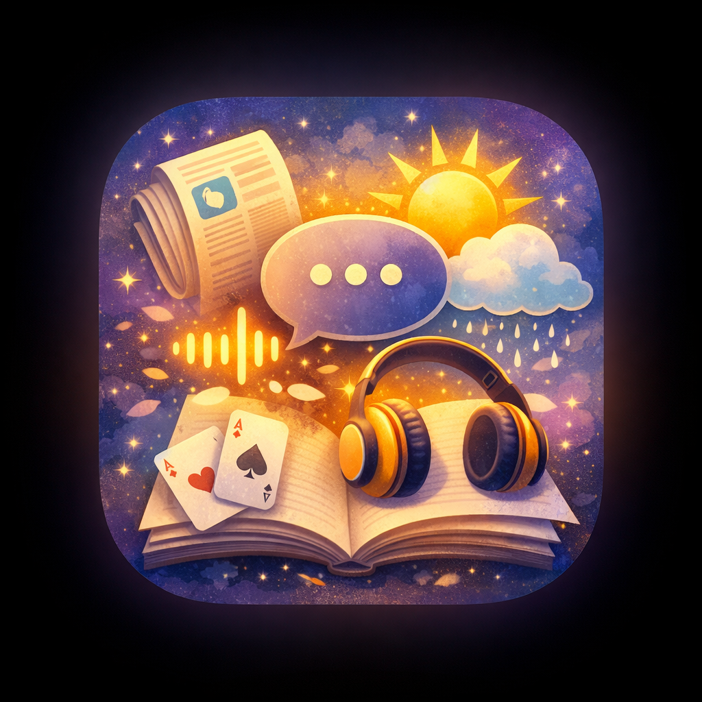 用更轻松的方式了解身边发生了什么:精选本地新闻中文播报、今天与明天的天气提醒, 以及适合睡前放松的有声读物。打开就能听,随时继续上次的播放进度。